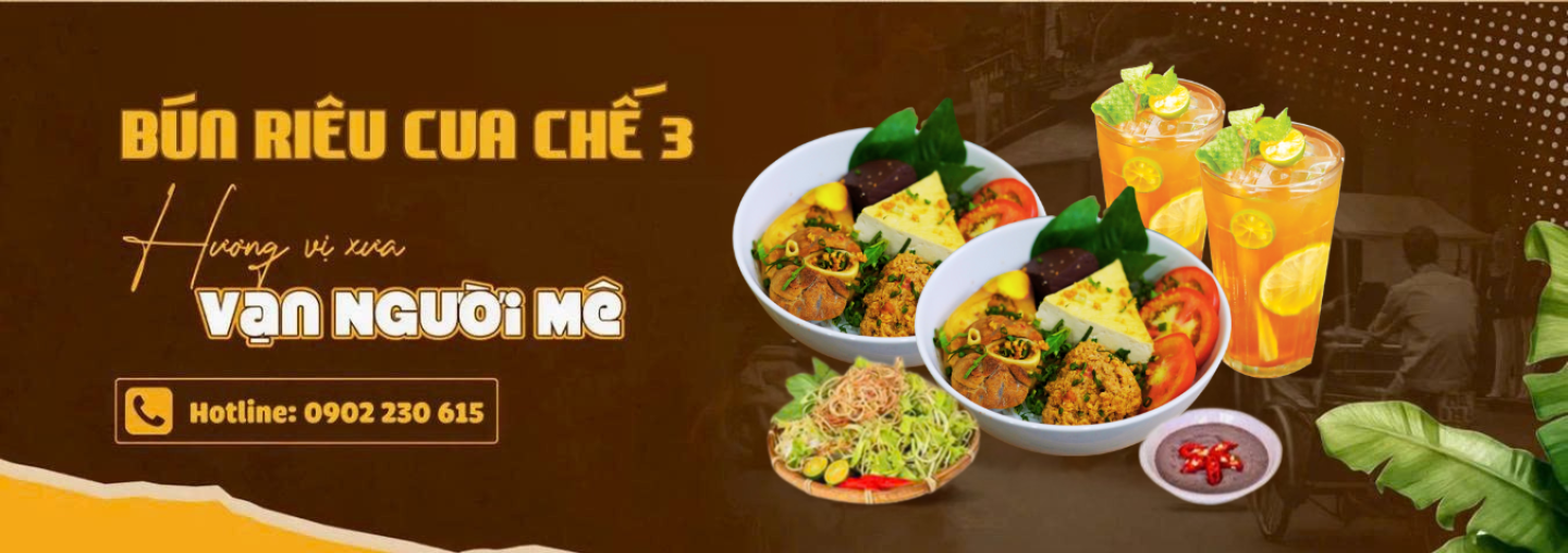 Chào mừng bạn đến với Bún Riêu Cua Chế 3 – nơi lưu giữ hương vị truyền thống của món ăn dân dã, đậm đà bản sắc Việt! Tại Chế 3, chúng tôi tự hào mang đến cho thực khách tô bún riêu cua đúng chuẩn vị: ngọt thanh từ nước dùng ninh từ cua đồng tươi, béo ngậy từ riêu cua thơm lừng, hòa quyện cùng đậu hũ chiên vàng, chả thơm, giò dai và các loại rau sống tươi ngon, sạch sẽ.